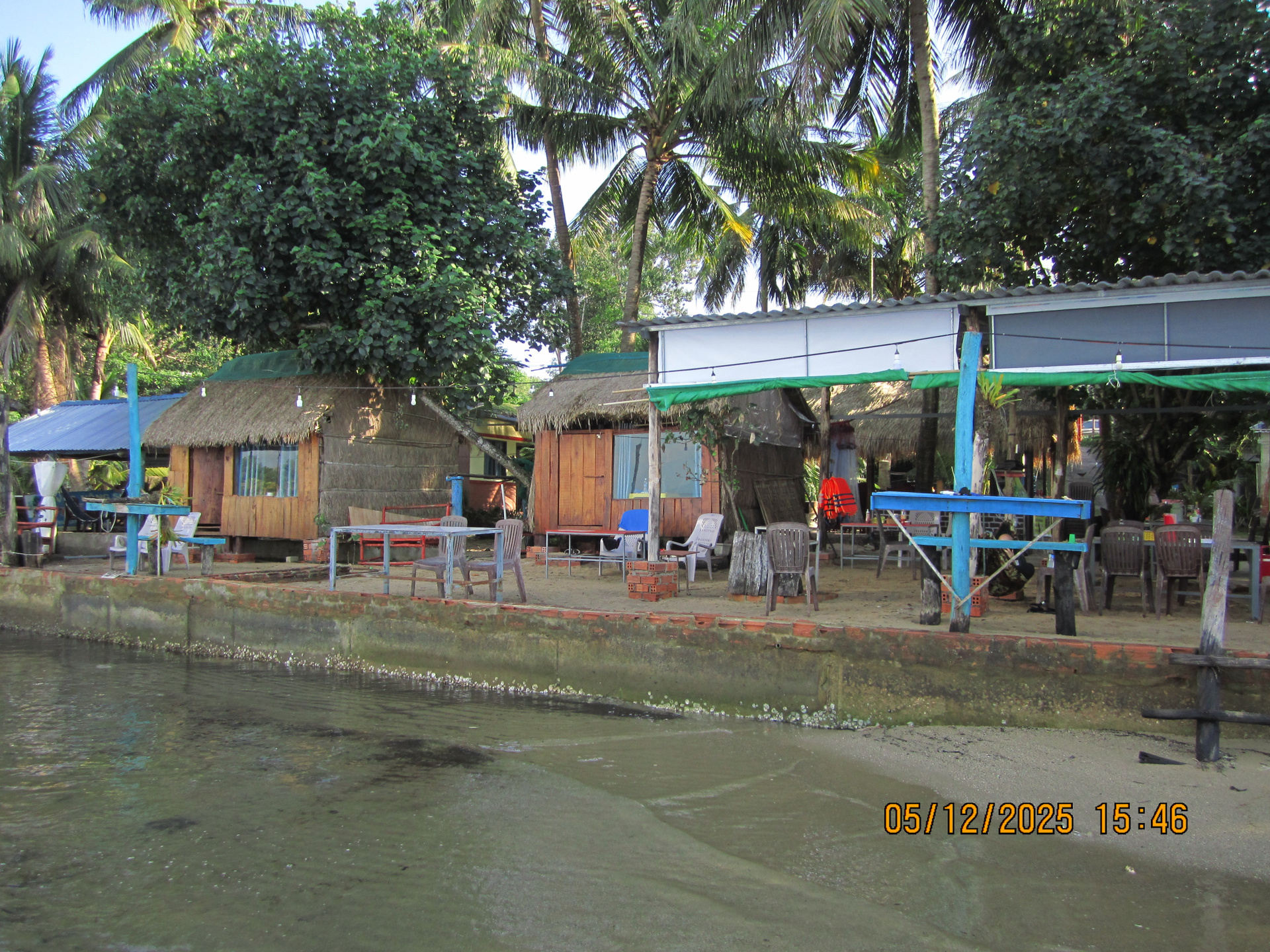 И вид вокруг потрясающий: с одной стороны — пальмы и бунгало на фоне холмов, с другой — другой государство, Камбоджа, прямо перед глазами.